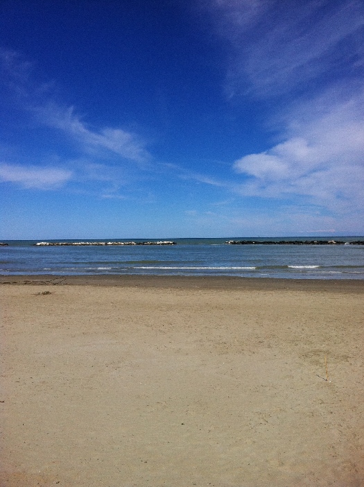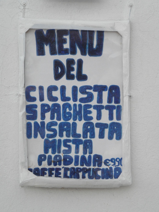 Morgens ist die Straße doch tatsächlich etwas nass und der Himmel wolkenverhangen. So `ne Frechheit! Wir gehen in einer Halle Schwimmen und nehmen natürlich die extra dafür ausgeschilderte langsame Bahn „corso lento“. Auf der Nebenbahn werden drei kräftige Damen im Schmetterlingsstil durch einen Trainer durch die Halle gejagt. So viel Anstrengung tut schon beim Zusehen weh und kann nicht gut sein! Also schwingen wir uns am Nachmittag bei wieder aufgeklartem Himmel auf die Räder und verplempern 38 km ganz locker im Flachen bei Sonnenschein.