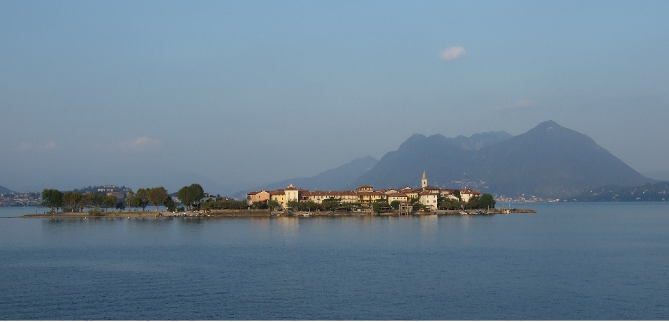 Die folgenden Kilometer ab Domodossola sind zwar flach, aber es weht ein beständiger Gegenwind, der uns noch etwas ärgert und unsere Reserven mobilisieren lässt. In Mergozzo müssen wir aufgrund der Hitze und des Gegenwindes noch mal für die letzten Kilometer des Tages in einem winzigen Laden nachtanken, dann sind wir auch schon am Lago Maggiore angekommen. Malerisch liegen unweit des Ufers zwei Inseln in der Abendsonne und in Stresa finden wir schnell ein passendes kleines Hotel.