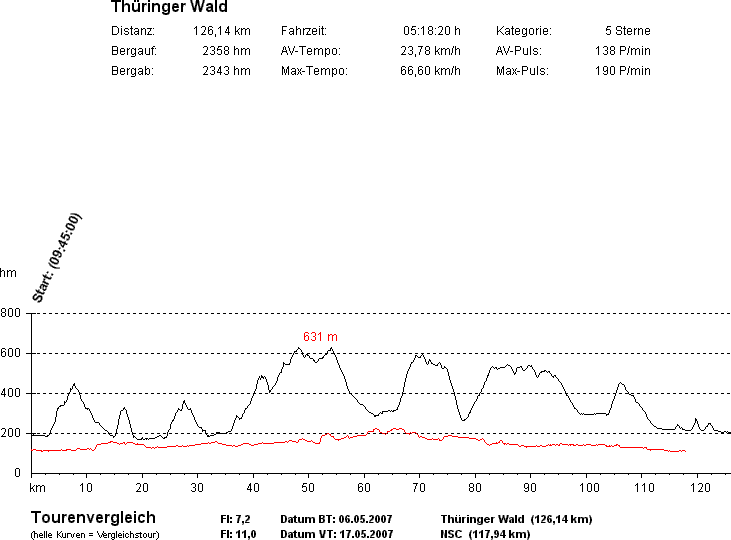 Dafür, das die Thüringer Waldroute deutlich höher war,war sie auch noch länger.