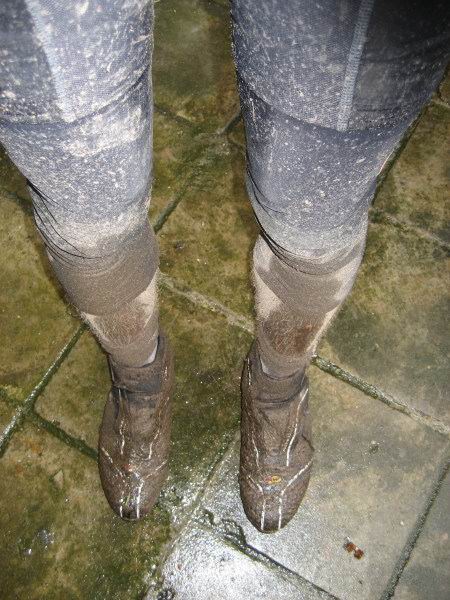 Chrissy und ich haben bis 9.45 gewartet, dann begann die Schlammschlacht. Die ursprüngliche Route wurde etwas gekürzt. 40 km bei dem Wetter sind auch OK.