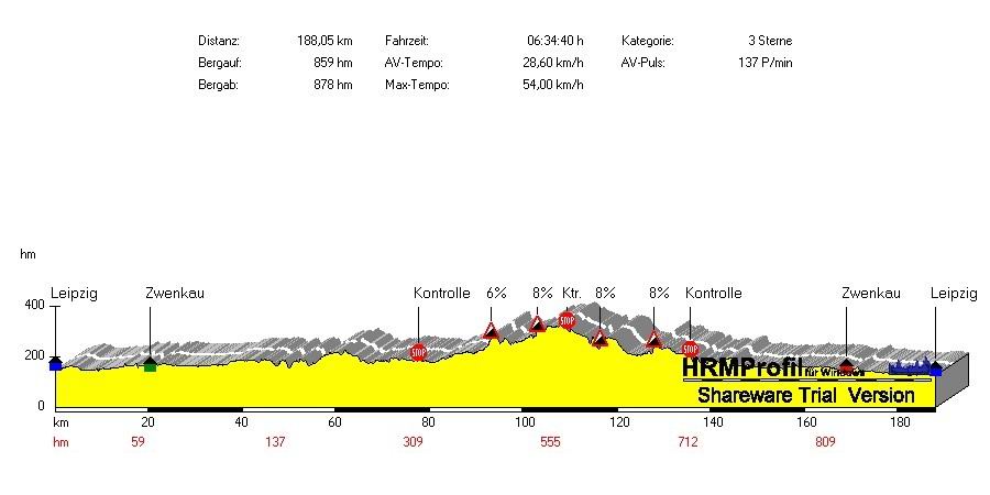 Am dritten Kontrollpunkt wurde kurz Susi Hallo gesagt, das Unvermeidliche noch etwas hinausgezögert, dann auf Katzenköpfen durch fürchterlich gelangweilte Dörfer hindurch geholpert, die restlichen Steigungen aus Ärger und Schwäche einfach ignoriert, einen unglaublich (für mich) dummen Bogen um Zwenkau gemacht und mit dem müden Kopf voran in den Gegenwind.