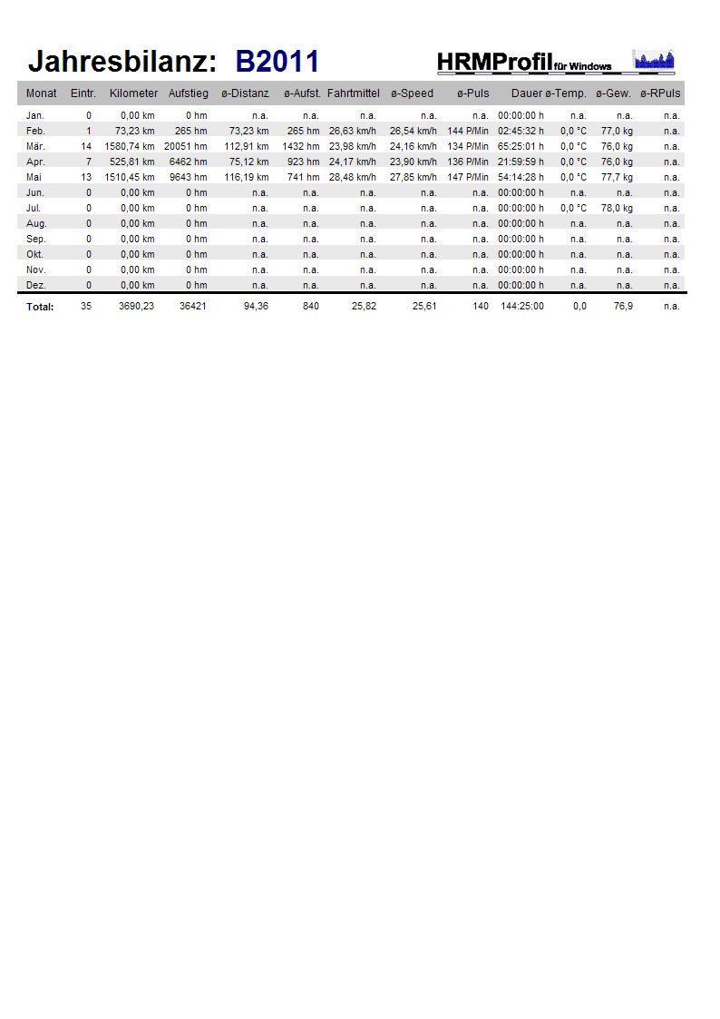 gesamt 2011: 3670 km / ca. 18 tHm