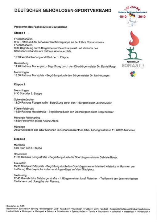An diesem Vorhaben beteiligt sich auch der Deutsche Gehörlosen Sportverband, indem er den dreitägigen Abschnitt von Friedrichshafen über Memmingen und München nach Salzburg organisiert.