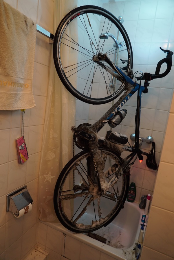 Hier liegen so 20 cm Schnee. Ansich lässt es sich ganz gut fahren (mit dem Crosser). Aber sobald der Fuß mal absetzt, sind die Cleats zu und man kommt nicht mehr in die Pedale. Muss ich wohl doch nachher mit Auto einkaufen und den Heckantrieb mal quer treiben. :D