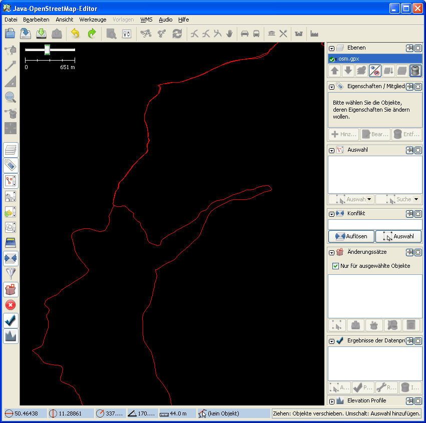 Ich exportiere die entsprechende Strecke in Sporttracks als GPX und importiere sie in JOSM.