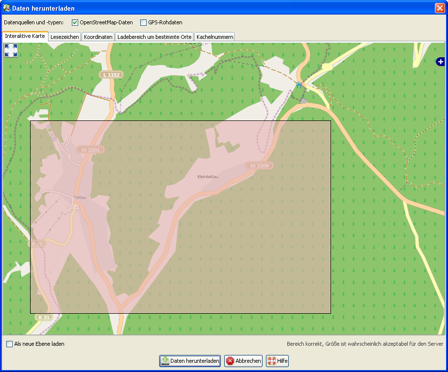 Datei --> Vom OSM-Server herunterladen