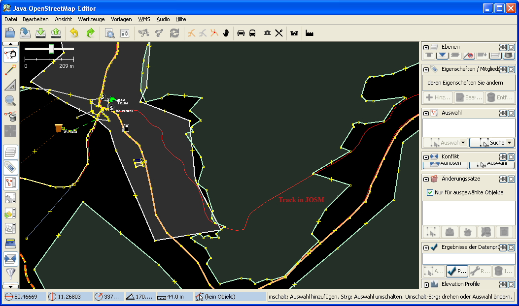 4. Track und vorhandene Karteninformationen in JOSM laden