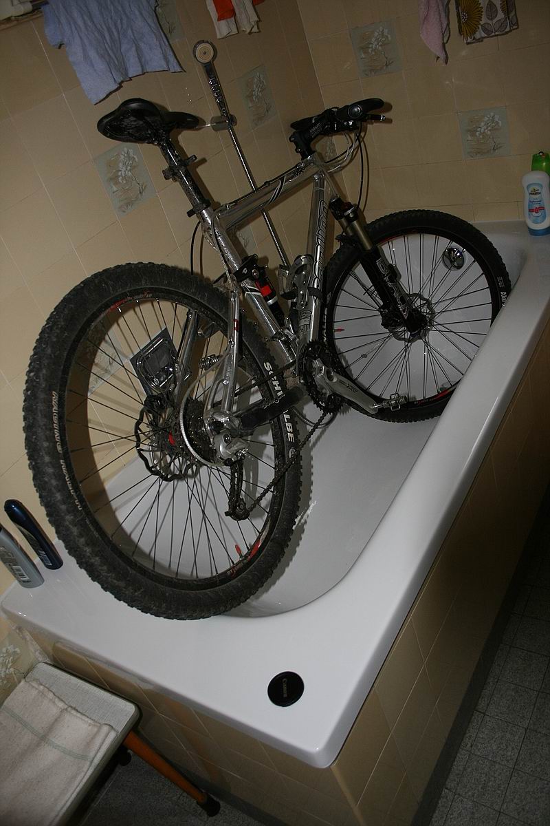 Ich habe meine Waschbox im Bad. Meistens verlässt mich aber die Lust, wenn Laufräder, Ritzelpaket und Kette sauber sind... :pfeif: