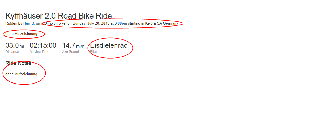 Oder dass man bei einem manuellen Eintrag selbst Startzeit, -ort, Rad und Beschreibung sieht, die bei einer Aufzeichnung nicht sichtbar sind, oder erst mühsam zu erklicken sind, dafür aber keine Kudos/Kommentare?