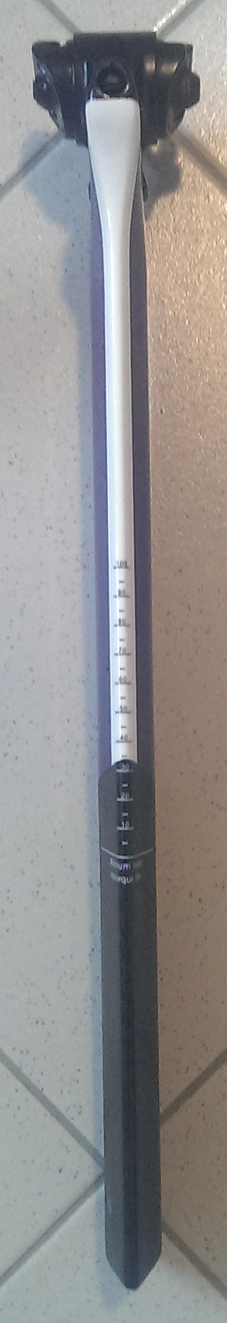 Also hab jetzt nochmal gemessen. Die Stütze geht 14-16cm problemlos rein. Also so dass die letzte Markierung (siehe Bild die ganz lange mit Text drunter) gerade so verschwindet.mi67 hat geschrieben: Du kannst ja die notwendige Einschubtiefe grob danach kalkulieren, wie hoch Deine Satteldecke (oder das Sattelgestell) am Straßenrenner über der Tretlagermitte montiert ist.